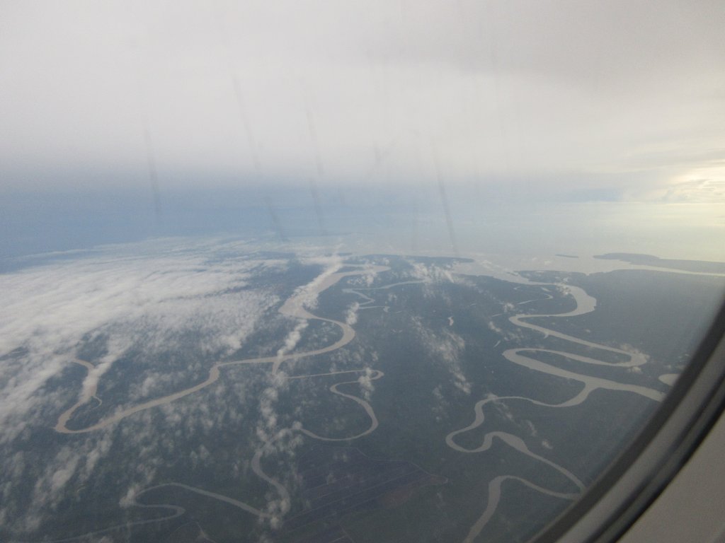 Sandakan is down below where that big bay is. You can see how many rivers flow out. The one to the far right is the Kinabatangan