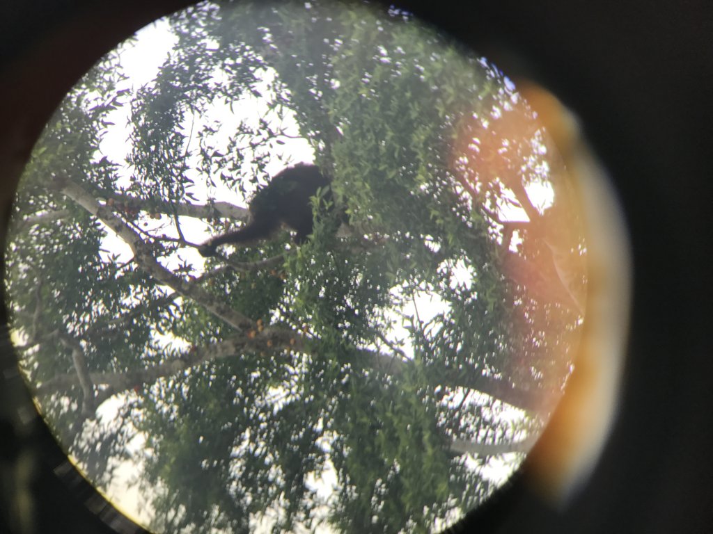 Looking through the binoculars!